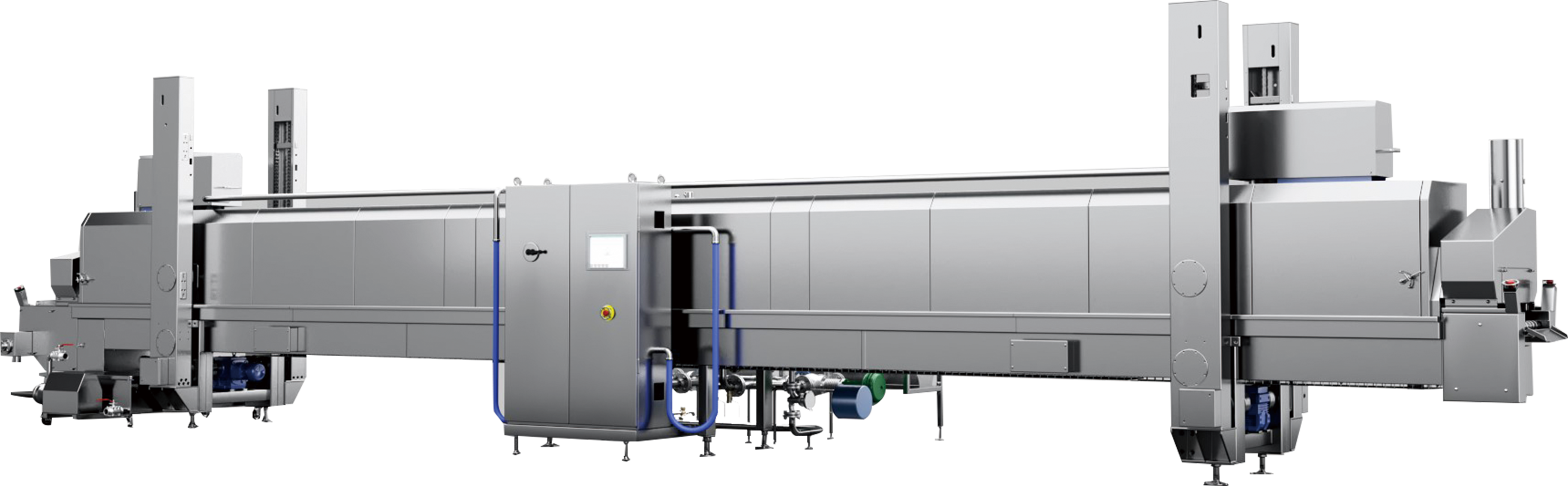 Wolfking electric heating fryer is a modular fryer available in lengths from 4 to 6 meters, and in widths of 650 and 1050 mm. The heat exchanger delivers the highest heating capacity in the industry, and guarantees fast and uniform heating.